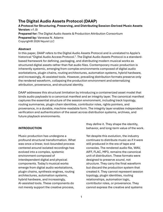 This paper outlines a proposed infrastructure framework for preserving attribution, provenance, and production context in modern digital music distribution.